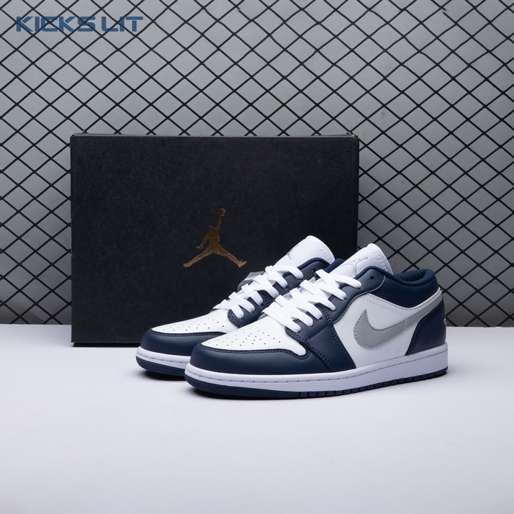 Jordan 1 Low Wolf Grey Midnight Navy 553558-141 Unisex